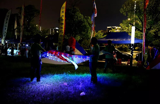 来自哈尔滨、杭州、上海、南京、镇江等多地共23支代表队参加了邀请赛,夜光风筝、鹞灯陆续放飞上空,柔美的灯光,摇曳的灯火,忽明忽暗,特别有韵味,吸引了众多居民赶来赏鹞。特别是会“喷火”的龙鹞,更是引起了围观群众的阵阵惊呼。